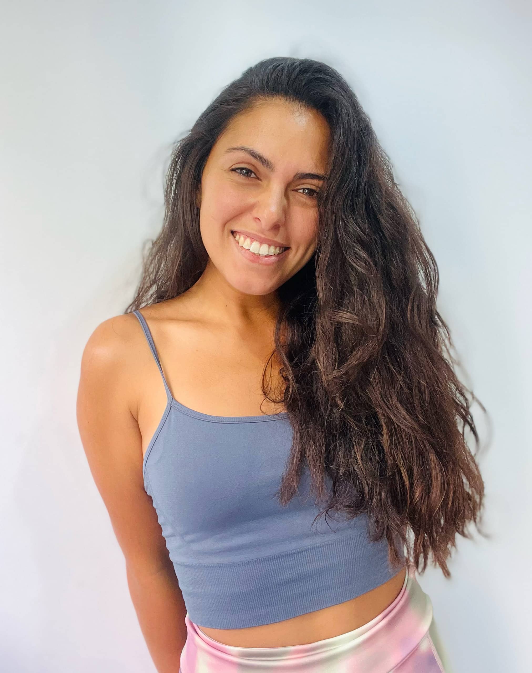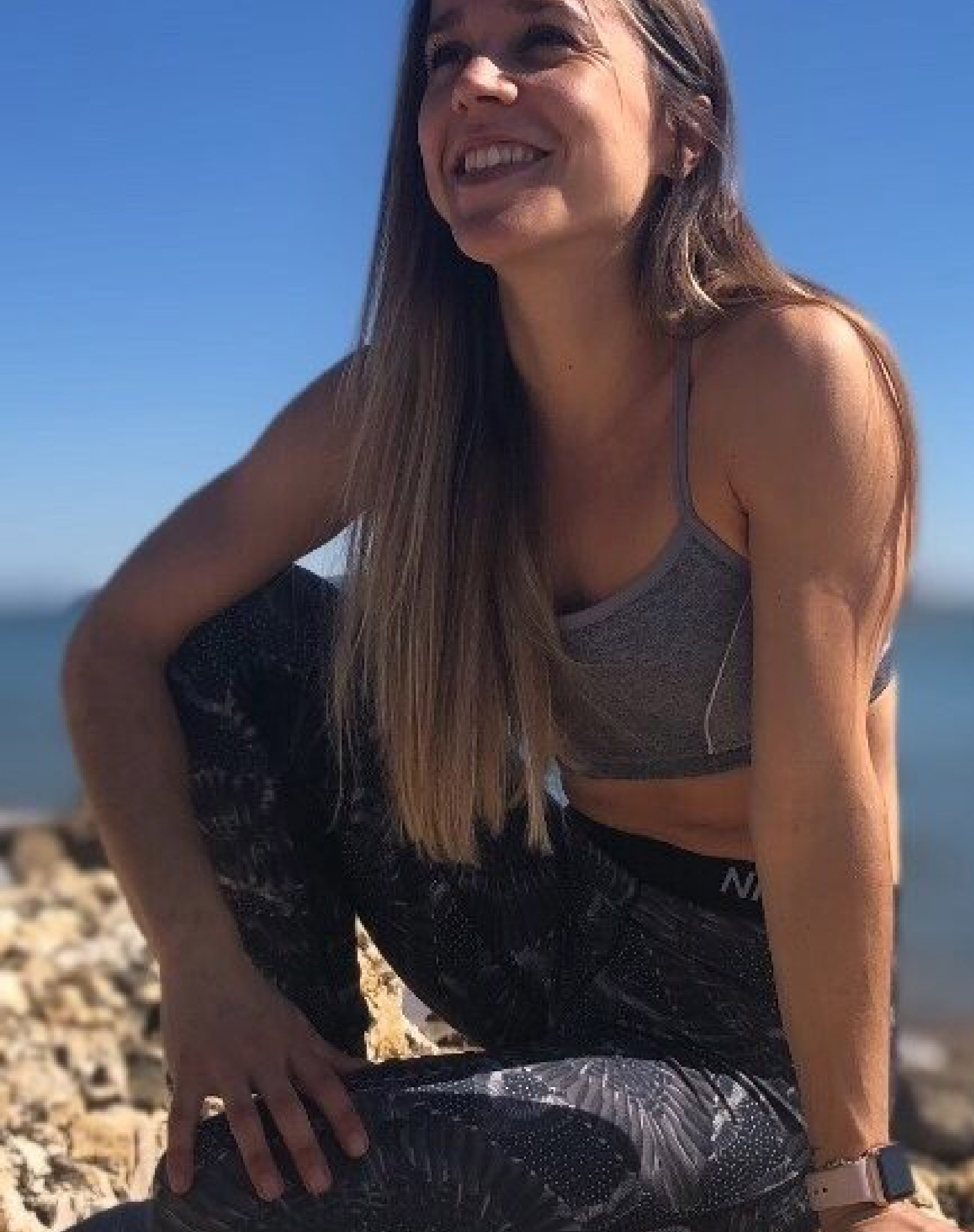 Igual que yo, practicó gimnasia rítmica y estudió Ciencias de la Actividad Física y Deporte. Luego se formó en entrenamiento para la mujer, embarazo y posparto y en 2012 empezó a trabajar como entrenadora y preparadora física de gimnasia rítmica, al mismo tiempo que era instructora de pilates, HIIT y entrenamientos para la tercera edad.