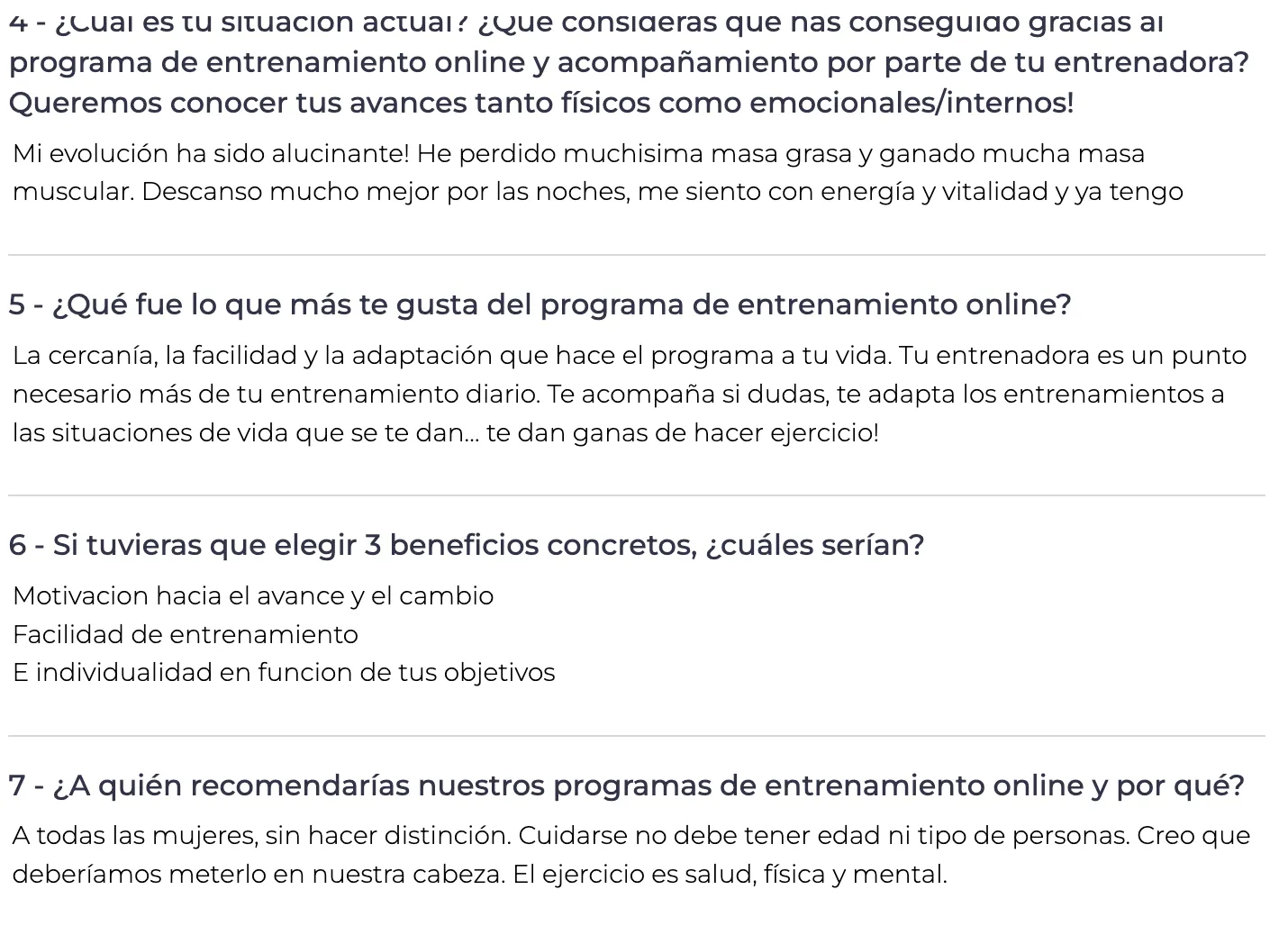 Desde el primer día, Rosa ha contado con el acompañamiento de su entrenadora Lorena, quien le ha guiado en cada fase de su progreso. Con un plan personalizado y adaptado a sus necesidades, Rosa ha visto cómo su cuerpo responde al trabajo bien estructurado. Semana a semana, la intensidad fue aumentando de manera segura y efectiva con un trabajo de fuerza y enseñándole a controlar su core, llevando a Rosa a ganar confianza en sí misma, y progresando poco a poco con ejercicios de carga.
