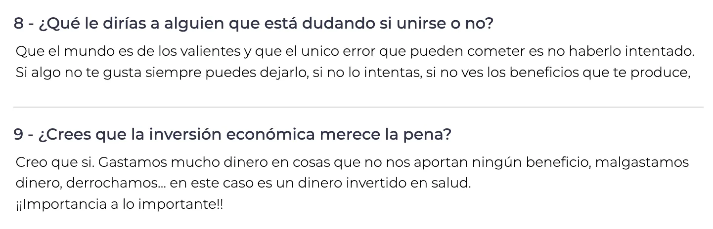 Los resultados físicos son solo una parte del cambio: Rosa ha reducido 10 cm en la cintura, 8 cm en el abdomen y ha disminuido notablemente su porcentaje de grasa. Pero para ella, lo más valioso es cómo se siente: “Necesito hacer ejercicio porque me siento muchísimo mejor emocionalmente”. Para Rosa, entrenar ya no es una tarea más, sino un pilar en su bienestar.