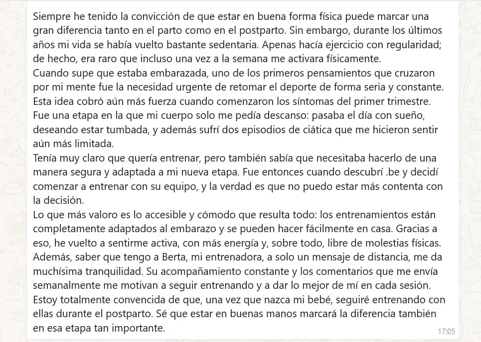 “He recomendado el programa a mis amigas embarazadas, pero muchas creen que con ir a pilates de embarazadas es suficiente.”