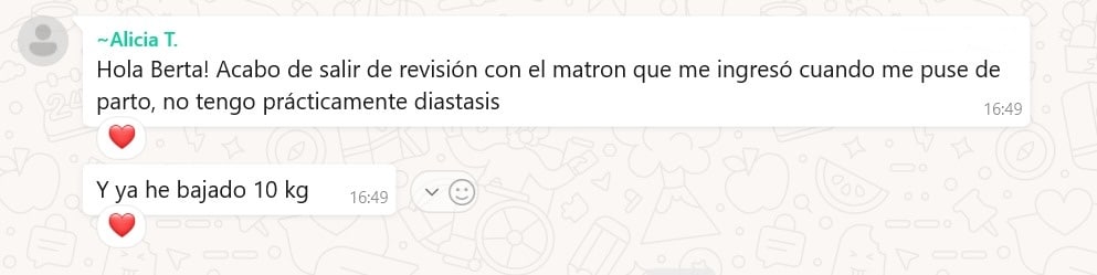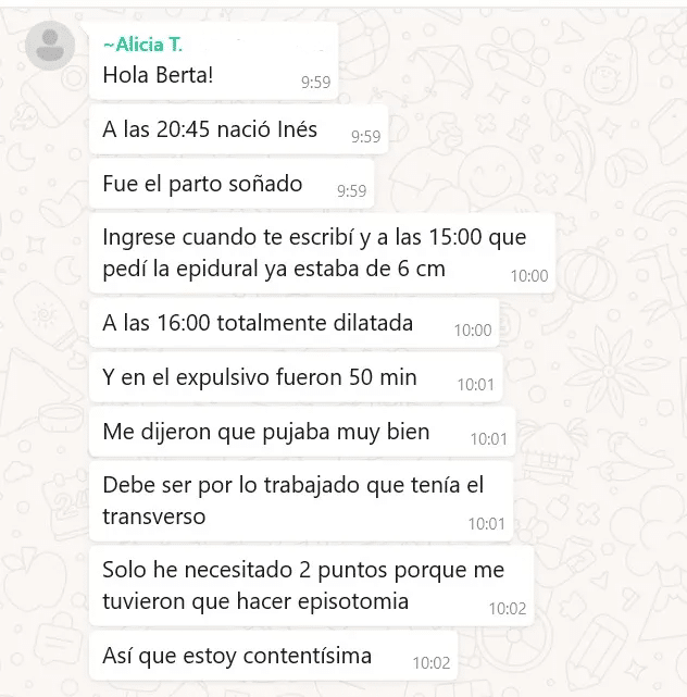 “Fue el parto soñado. Me dijeron que pujaba muy bien, y estoy convencida de que fue por el trabajo del transverso durante los entrenamientos. Solo necesité dos puntos por la episiotomía. Estoy contentísima.”